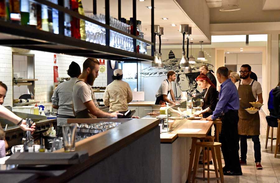 A really immersive experience from the neon pink sign entry, the long dark corridor with exposed water pipes leading into to a modern restaurant – where you can sit at a table or at the bench watching the chefs at work. Another Asian inspired menu. You can also book this one.