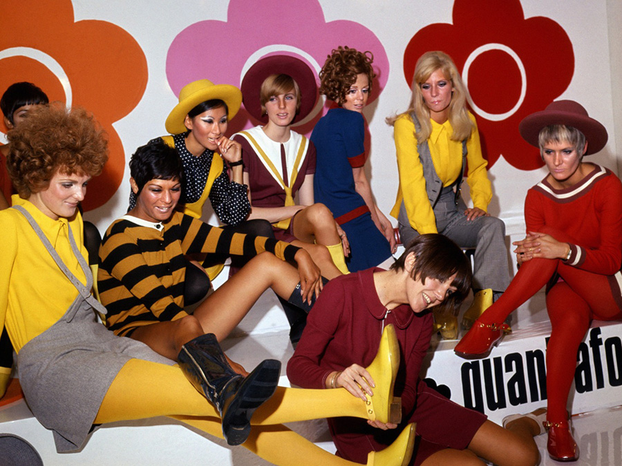The 60s' love of colour characterised the decade, and it wasn't limited to shirts, dresses, tops and skirts. The colour trend found its way onto tights, paired with the bold and colourful shift dresses and miniskirts. Hosiery manufacturers of the time like Mary Quant combined the 'Flower Power' style of dress and the Pop Art school of design to create fashion tights that would appeal to a female audience that enjoyed psychedelia. Again, something admired from afar by me.