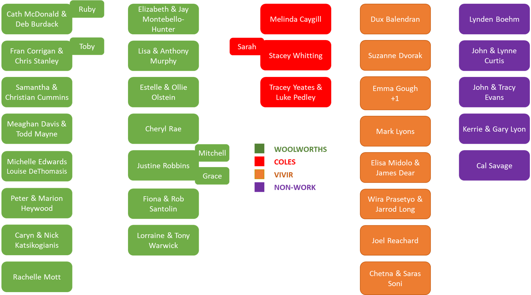 Additionally, with RSVPs now finalised, Jenny has used her graphic artist skills to do a HR influenced attendee list, see below for details. This way you can see who is coming, so if you pull out now we will know the reason!